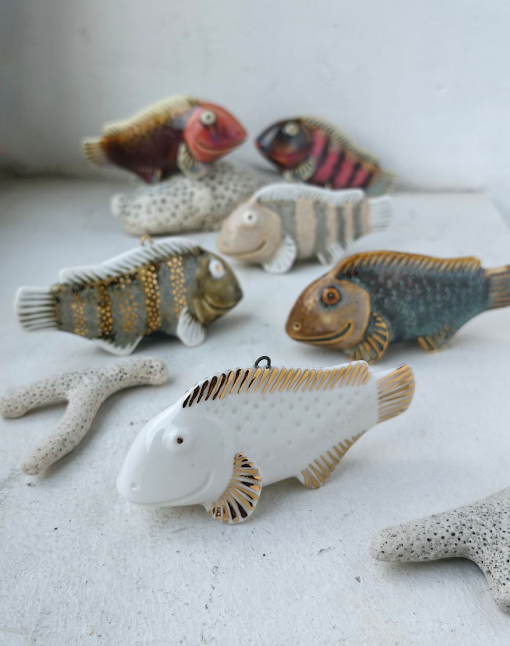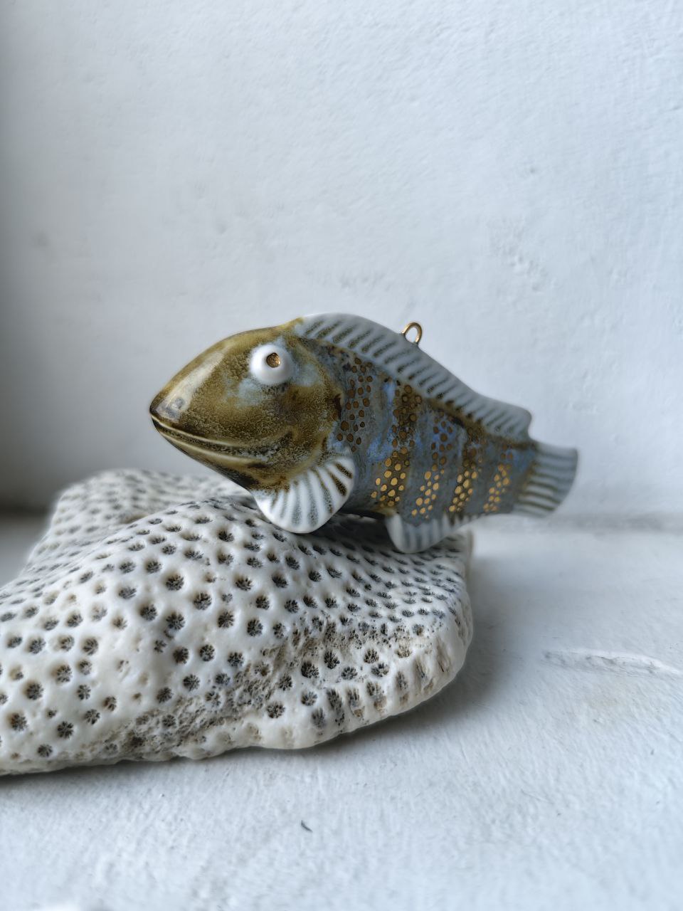 Керамическая ёлочная игрушка. Фарфор, глазури, препарат золота Размеры 10*5*3,5 см