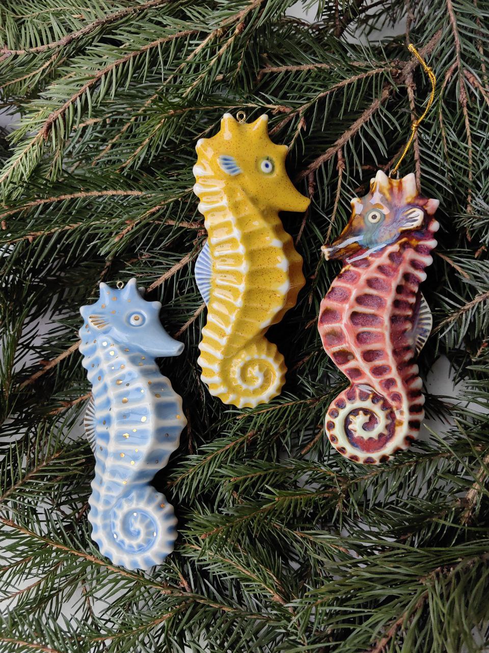 Керамическая ёлочная игрушка ручной работы. Фарфор, полуфарфор, эффектарные глазури, препарат золота
