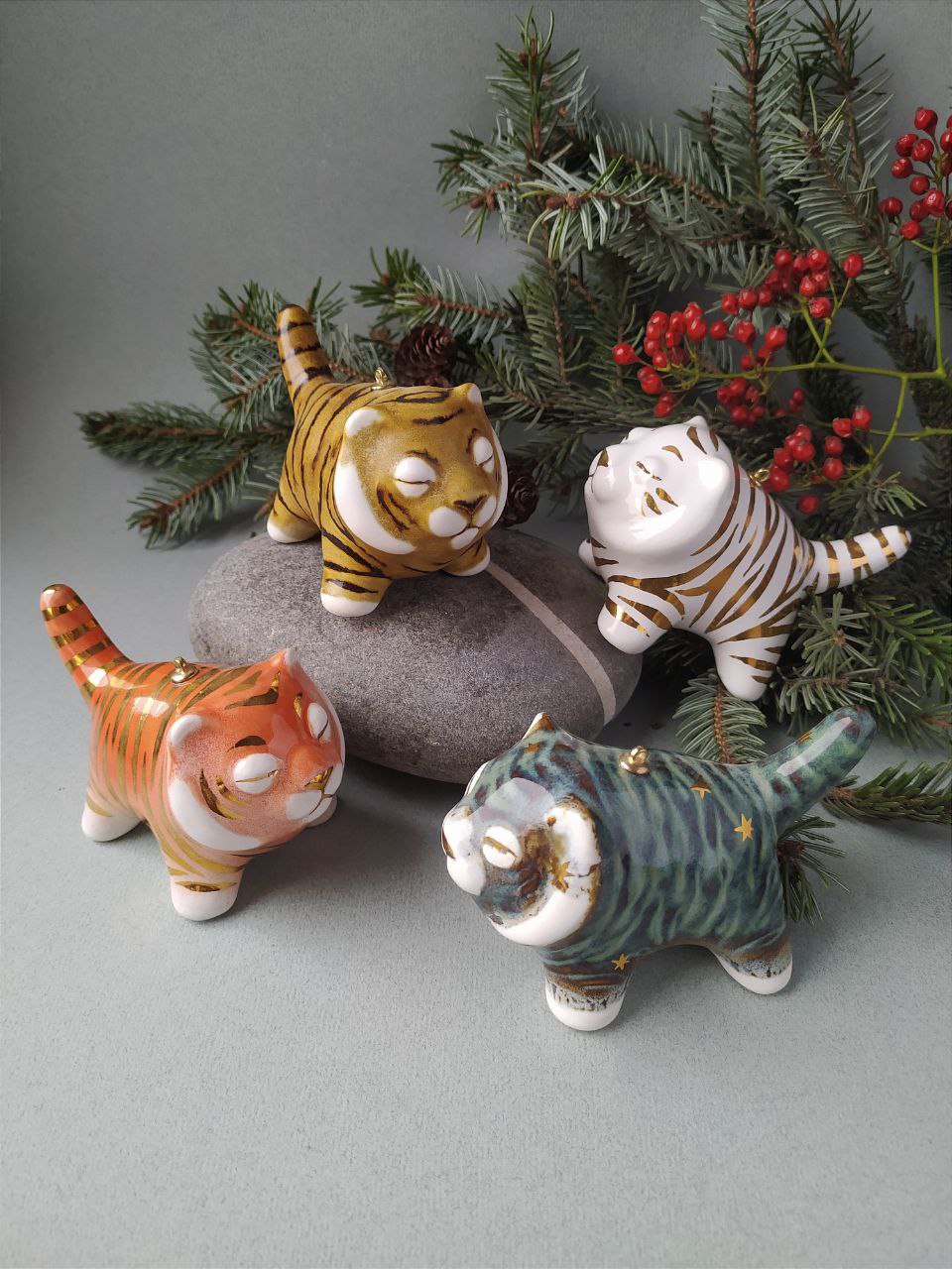 Керамическая ёлочная игрушка. Ручная работа Полуфарфор, глазурь, препарат золота Высота 6,2 см, длина 10,5 см. Вес 57 г